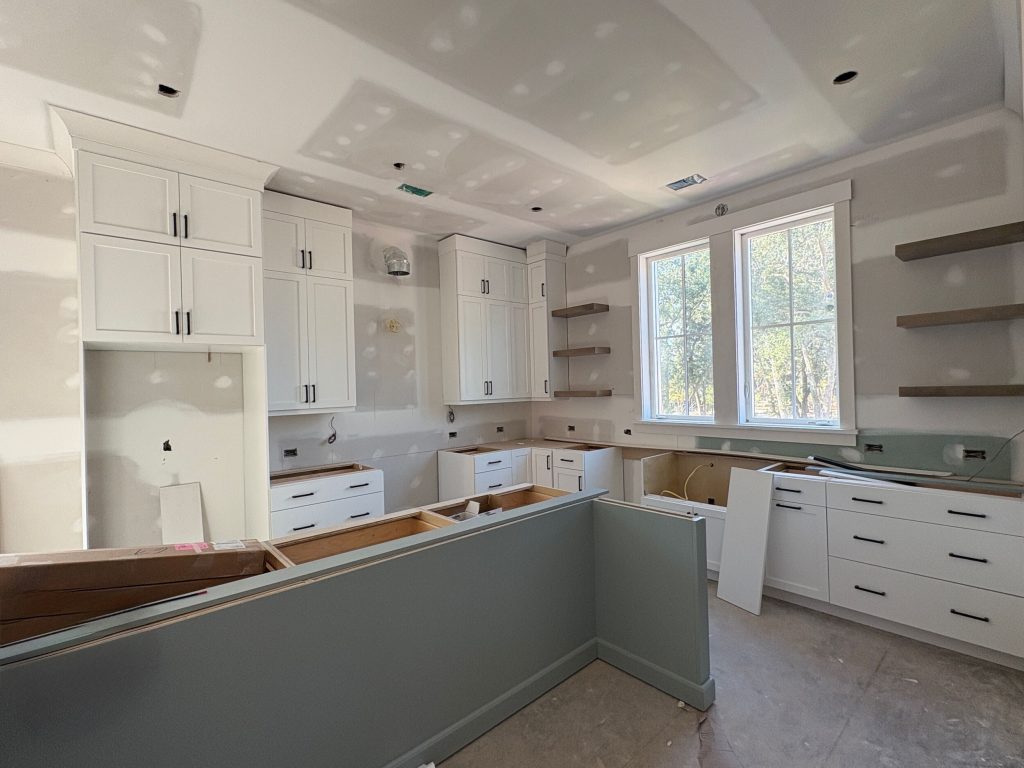 Inspired by the serene beauty of the coast, the Modern aesthetic brings together soft whites, simple textures, and an airy, light-filled ambiance. Warm wood cabinetry in the kitchen extends to the ceiling, complemented by gorgeous quartz countertops that seamlessly continue up the backsplash for a clean, sophisticated look. The blue island serves as a stunning focal point, inviting you to linger over morning coffee while enjoying the picturesque view from the expansive window wall.