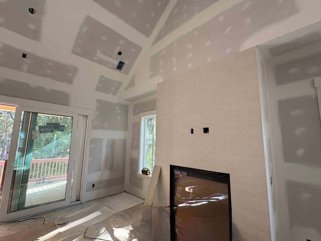 Step onto the welcoming front porch and into a true foyer that effortlessly flows into the chef’s kitchen and dining area. The heart of the home is the breathtaking vaulted fireside family room, where a grand slider door opens to a covered, screened porch with an outdoor fireplace, creating an incredible indoor-outdoor living experience.