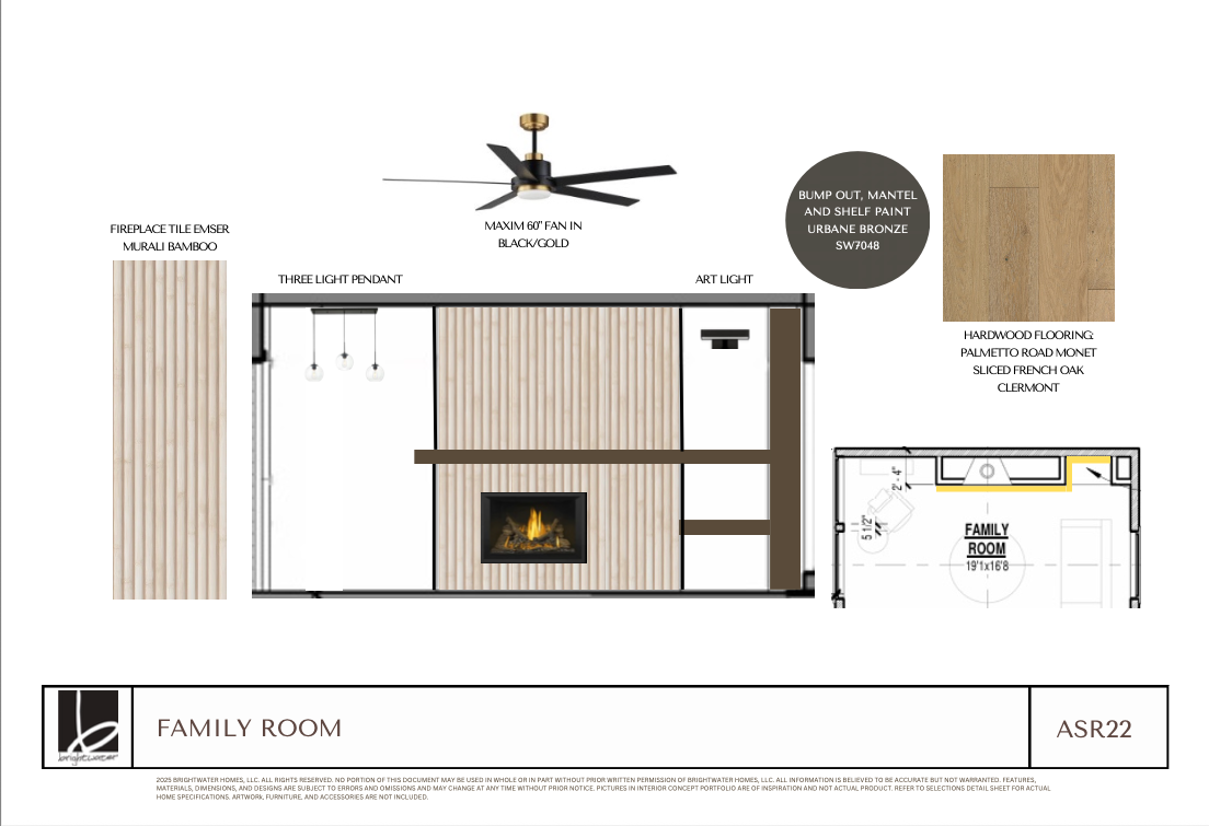 The interiors at 130 Cedarwood Lane have been meticulously curated to capture the home’s modern warmth in a masterful blend of light and texture. You’ll find warm wood tones, statement tile, sleek lighting, and rich color accents layered with hardwoods, quartz, metal, and glass to create elevated yet approachable spaces. Highlights include the kitchen where maple cabinets painted in a soft gray are the backdrop for quartz countertops, a taupe picket tile backsplash, fixtures in a warm champagne bronze, and thoughtfully layered lighting, as well as the family room’s oversized statement fireplace finished in a chic bamboo tile and the primary suite’s elegant spa bath with its rich blend of creamy quartz and tile offset by soft champagne bronze and gold.