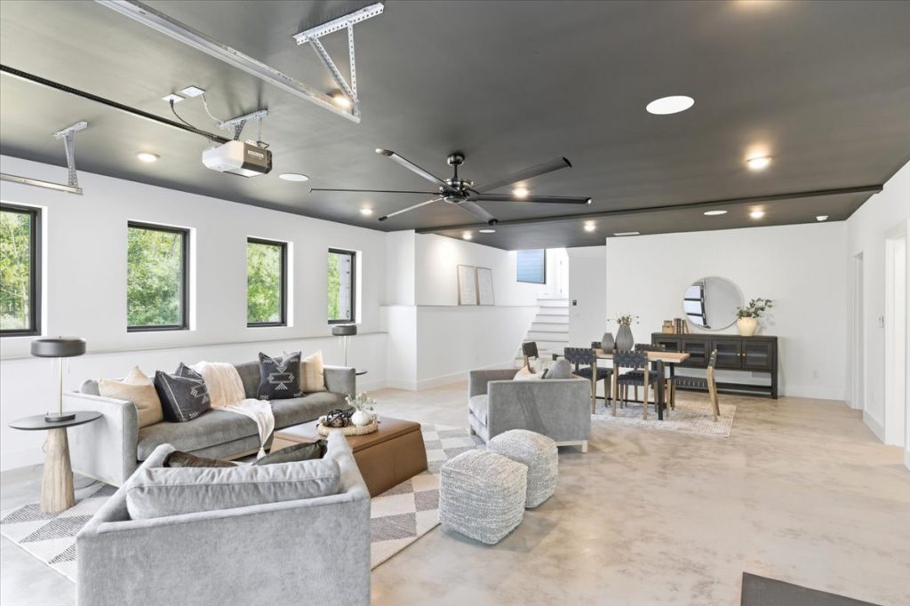 Over the garage, you’ll find a private office or guest suite with a full bathroom and shower. The three-car garage includes a professionally installed epoxy floor and is pre-wired for two electric vehicle chargers. An additional garage door in the terrace level offers extra parking for vehicles or toys.