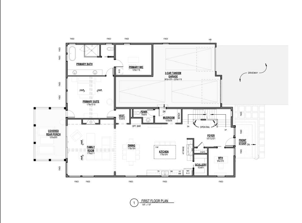 The main level features an inviting vaulted family room with expansive glass sliders opening to a 12’x20’ vaulted, covered rear porch—ideal for year-round gatherings. The gourmet kitchen is equipped with a Thermador 48” range, generous island, and a walk-in scullery designed for effortless entertaining. A dedicated work-from-home space sits just off the foyer for convenience and focus.