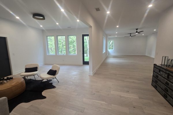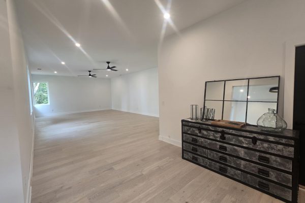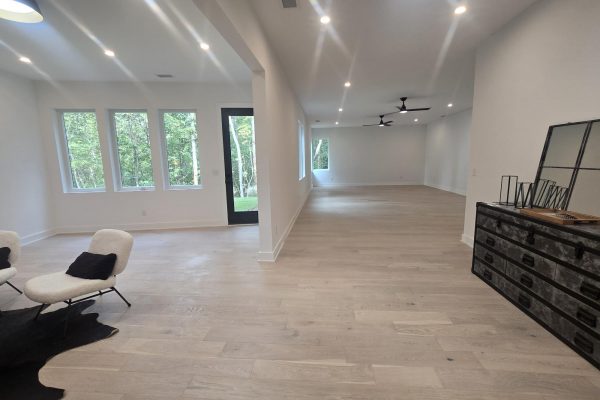 As a net-zero energy home, this residence comes equipped with solar panels, reflecting a commitment to sustainability and energy efficiency. The overall design is described as modern moody, characterized by simplicity, sophistication, and a focus on functionality. Natural materials like light wood and textures are complemented by dark modern accents, creating a balanced and inviting atmosphere.
