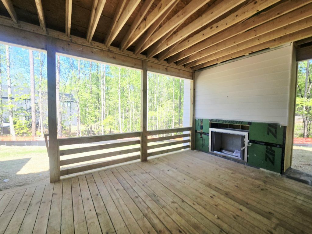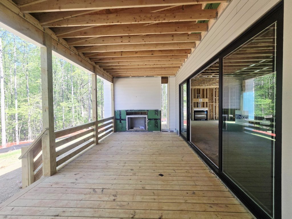 Indoor-outdoor living is effortless thanks to a four-panel sliding door that opens to a covered porch with an outdoor fireplace, creating an ideal setting for year-round entertaining.