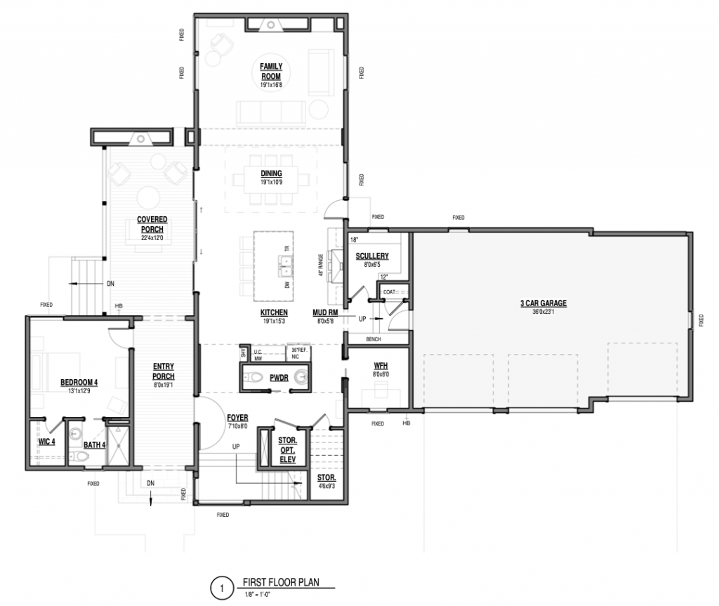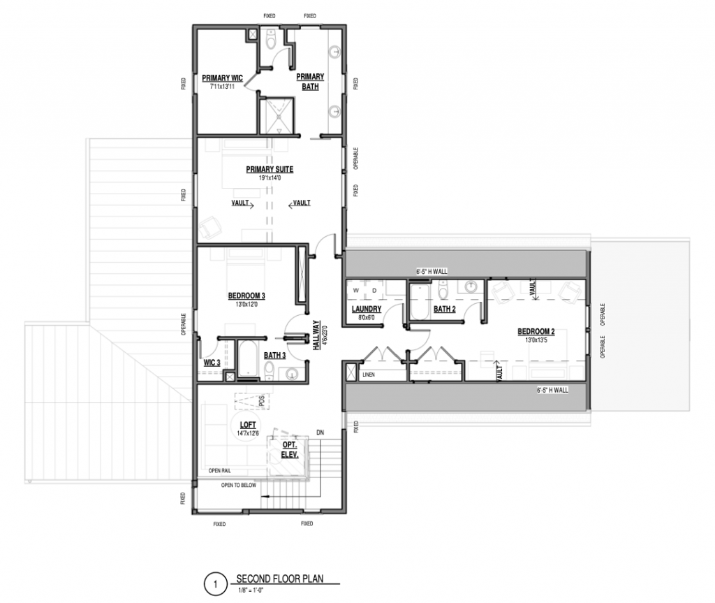A dedicated home office offers a productive workspace with natural light and connectivity to the rest of the home, while an optional elevator adds future-ready convenience without compromising the home’s cohesive design.