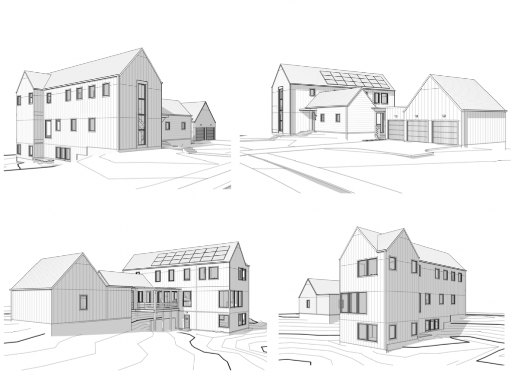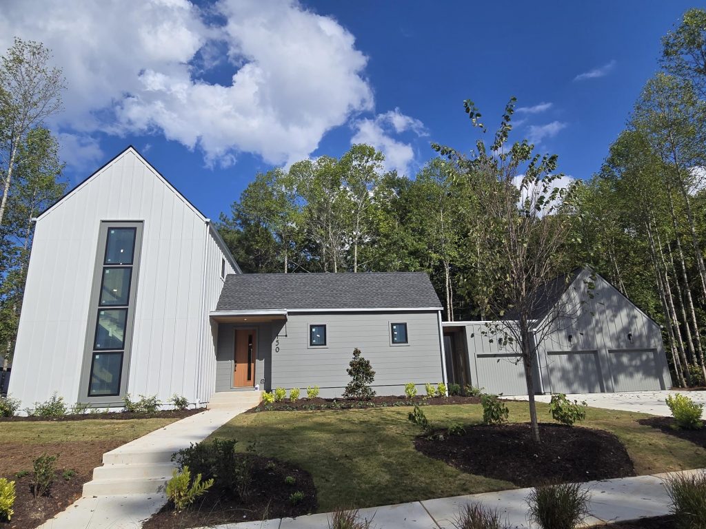 The exterior features a modern Scandinavian design with lap siding, board and batten accents, and striking front windows. As a net-zero energy home with solar panels included, 150 Cedarwood Lane combines energy efficiency with unparalleled style and comfort.