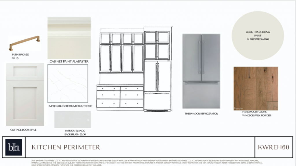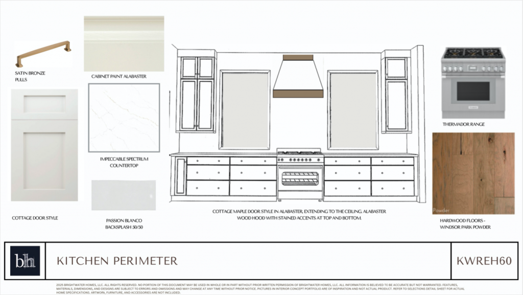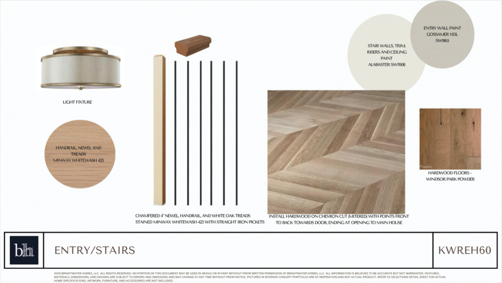 A wrap-around front porch and recessed entry set a warm, welcoming tone. Inside, chevron-patterned hardwood floors and curated finishes define the open, elegant interior. The chef’s kitchen is both beautiful and practical, featuring ceiling-height white cabinetry, a sand-stained maple island, quartz countertops with matching backsplash, and professional-grade Thermador appliances.