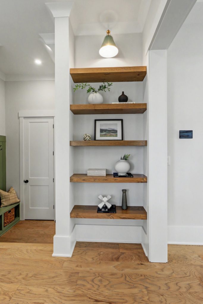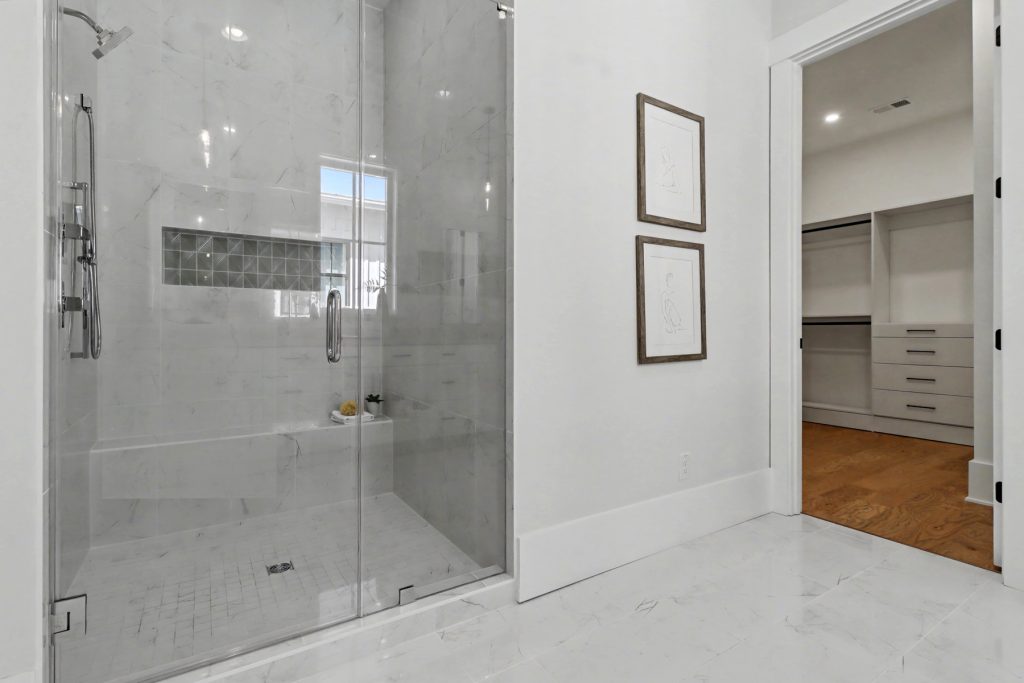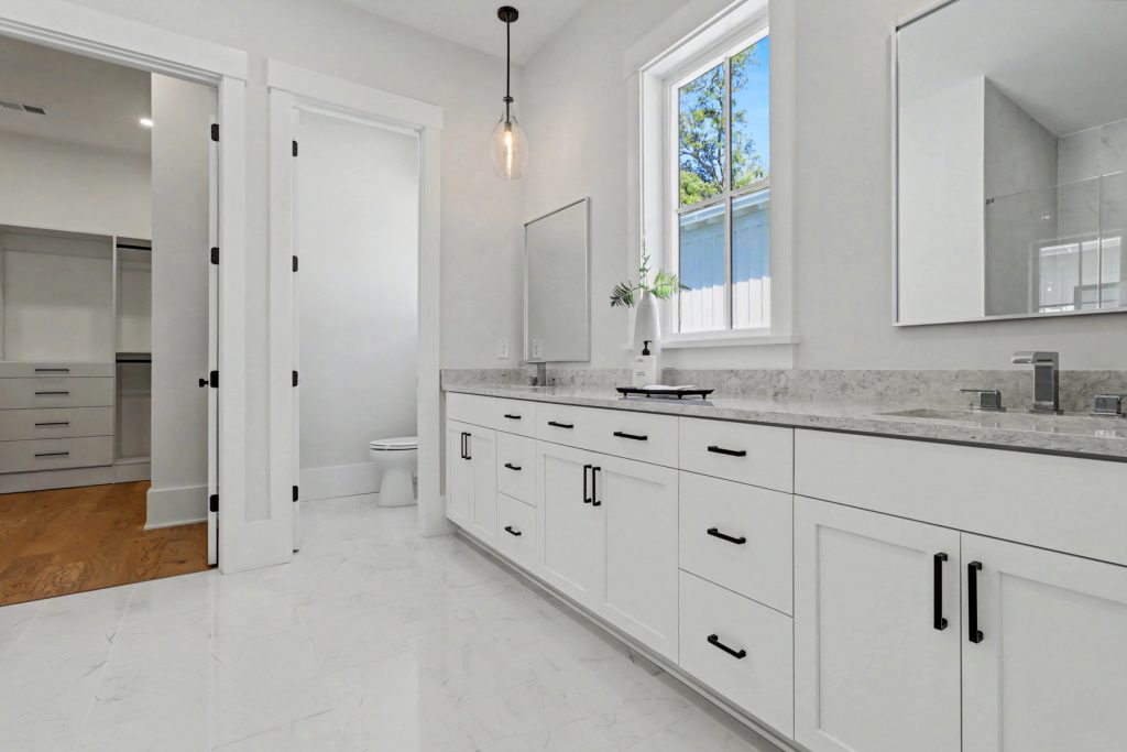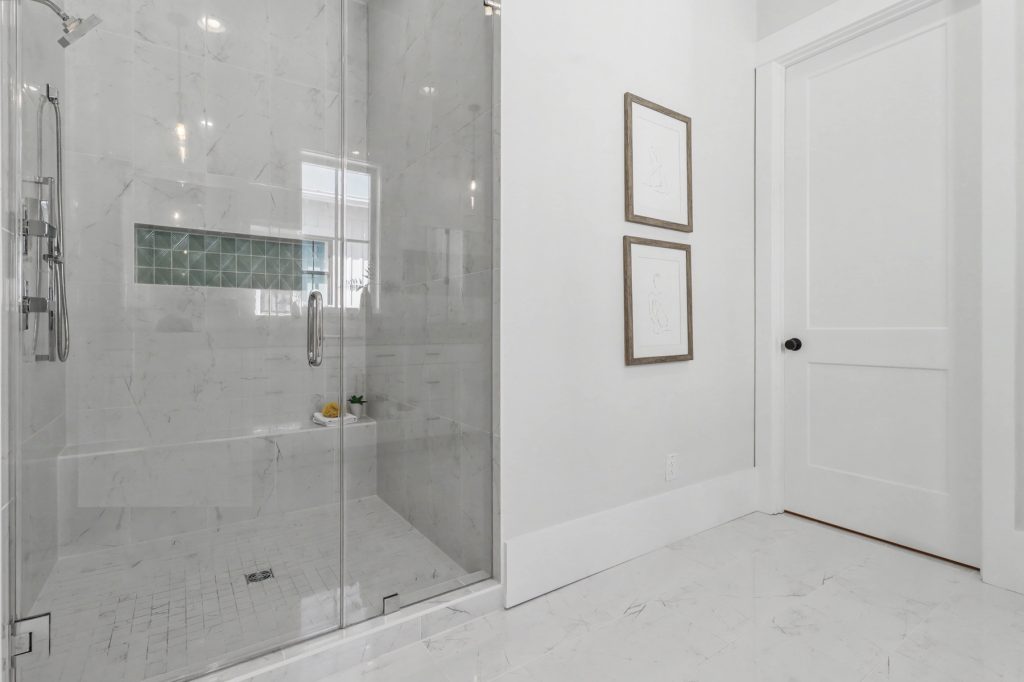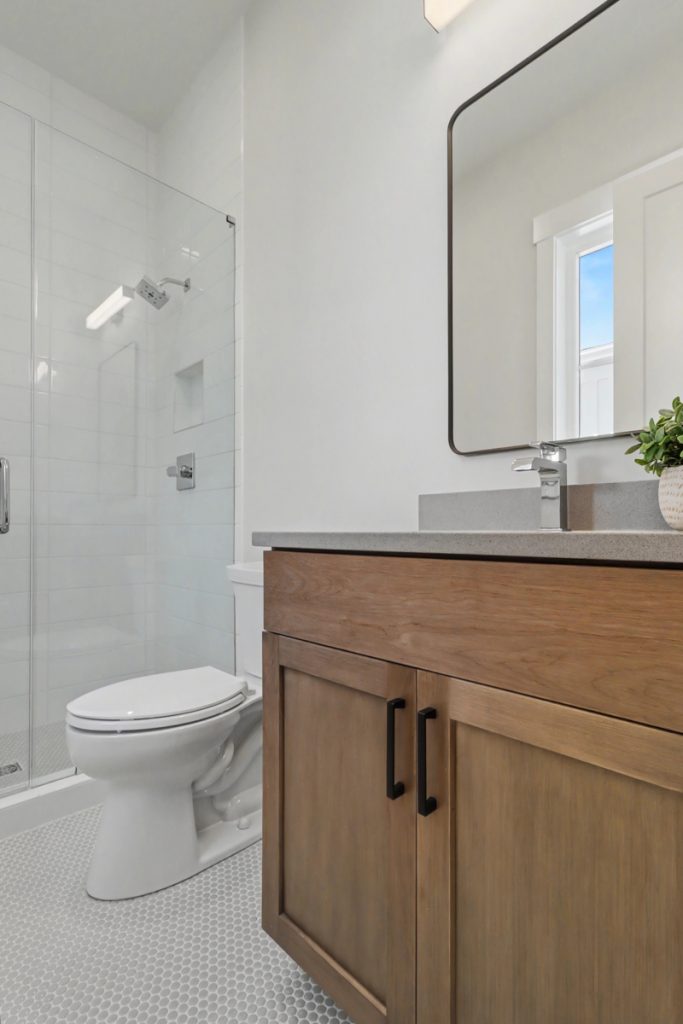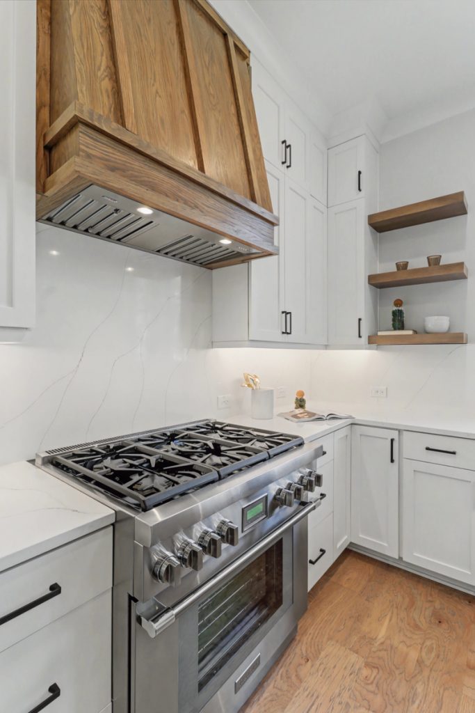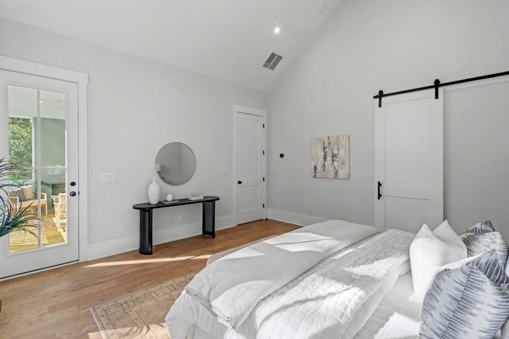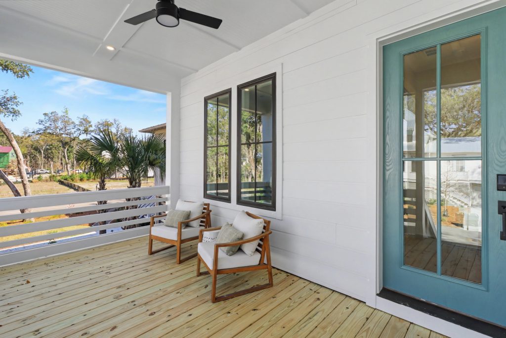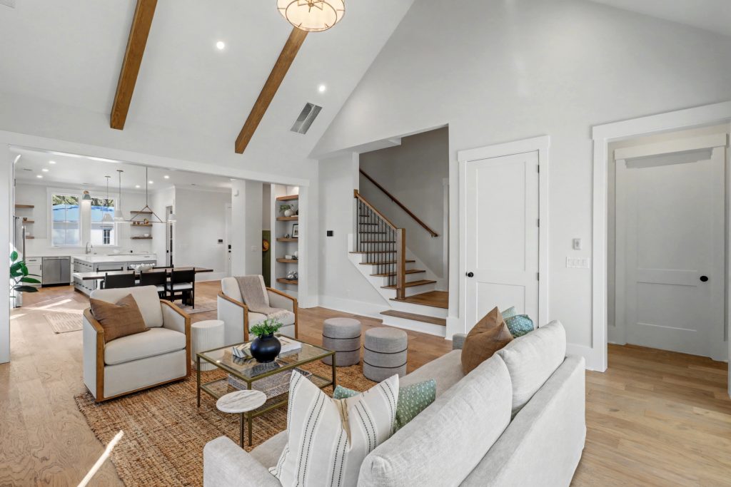 Inspired by the serene beauty of the coast, the Modern aesthetic brings together soft whites, simple textures, and an airy, light-filled ambiance. Warm wood cabinetry in the kitchen extends to the ceiling, complemented by gorgeous quartz countertops that seamlessly continue up the backsplash for a clean, sophisticated look. The blue island serves as a stunning focal point, inviting you to linger over morning coffee while enjoying the picturesque view from the expansive window wall.