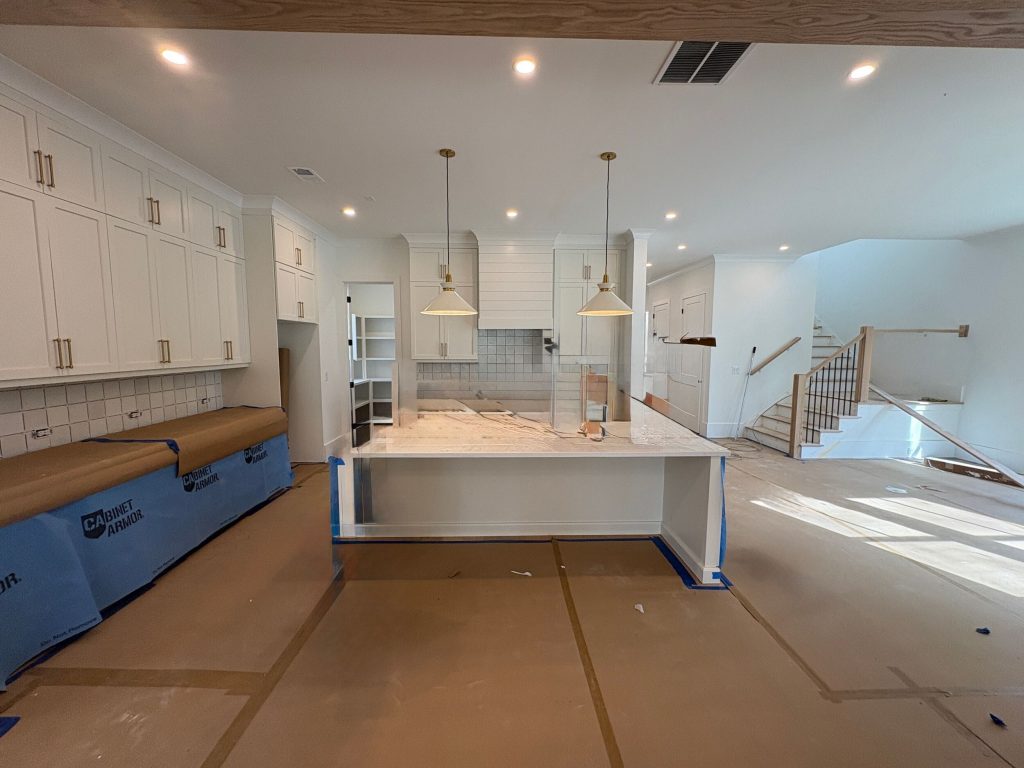 Enjoy seamless indoor-outdoor living with a 3-panel sliding door opening to a screened porch from the fireside family room—anchored by a stunning textured tile fireplace with a natural wood mantel. The chef’s kitchen shines with Thermador appliances, full-height alabaster cabinetry, quartz countertops, and a spacious scullery.