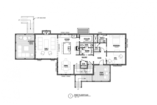 At the heart of the home, the gourmet kitchen with Thermador appliances and a spacious scullery opens to the dining area and family room—an inviting space for everyday living or gathering with friends. A three-panel sliding door connects the family room to a screened deck, creating a seamless indoor–outdoor experience ideal for morning coffee, evening cocktails, or year-round entertaining.